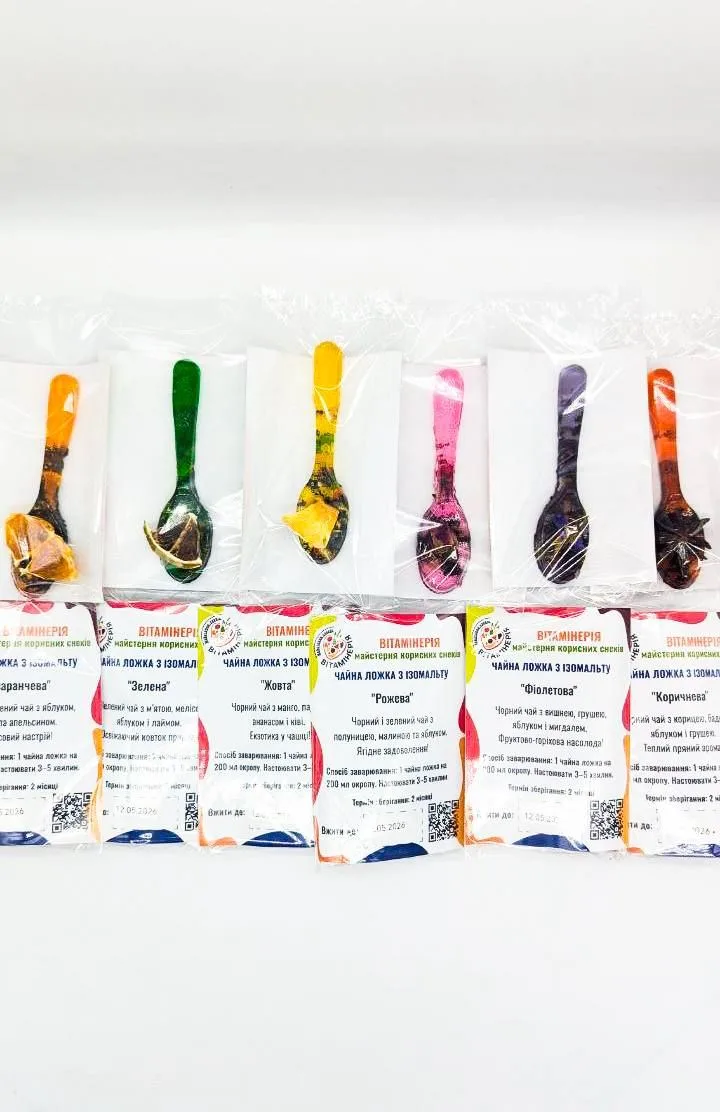 ЧАЙНІ ЛОЖЕЧКИ – СМАЧНИЙ WOW-ЕФЕКТ! Зробіть своє чаювання особливим! Чайні ложечки – це не просто напій, а маленька магія у вашій чашці. Ви додаєте окріп, і ложечка поступово розчиняється, відкриваючи справжнє розмаїття смаків і ароматів.
