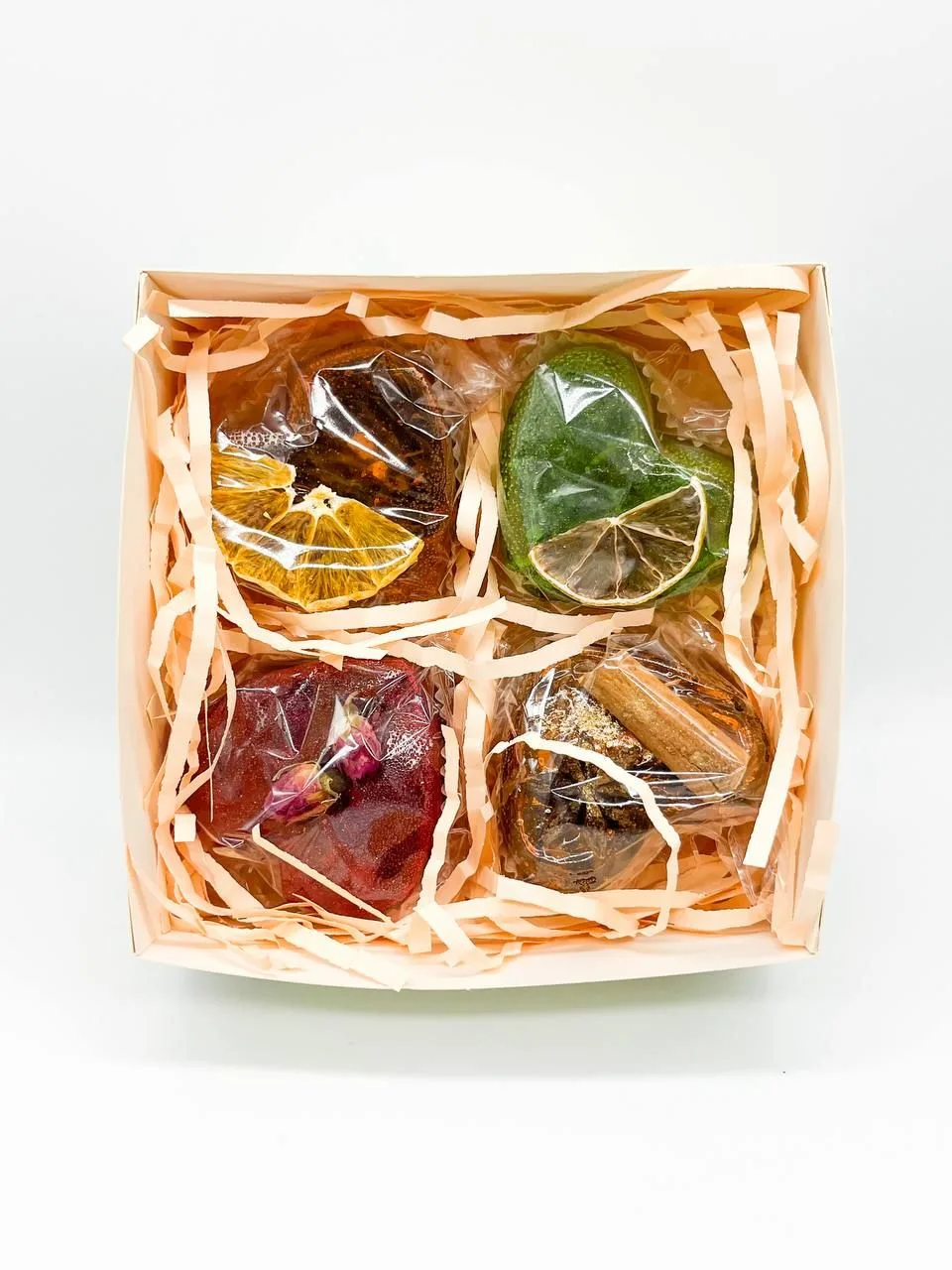 "Помаранчевий" Теплий, сонячний, з апельсиновою ноткою. Суміш чорного та зеленого чаю, волошка, календула, сушене яблуко та груша, апельсин. Ізомальтові сфери