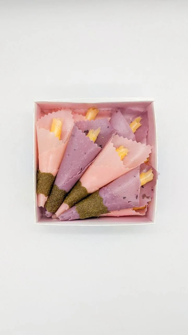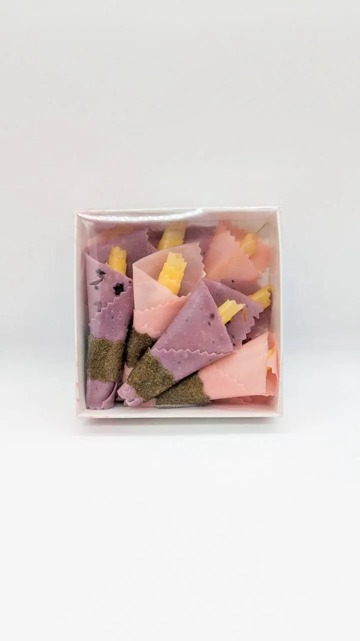 Йогуртові цукерки у формі квітів — це витончений подарунок для тих, хто цінує красиві та смачні деталі. У наборі 9 квіток зі смаками персика, полуниці та чорниці. Легка йогуртова текстура з приємною фруктовою ноткою створює делікатний, збалансований смак.